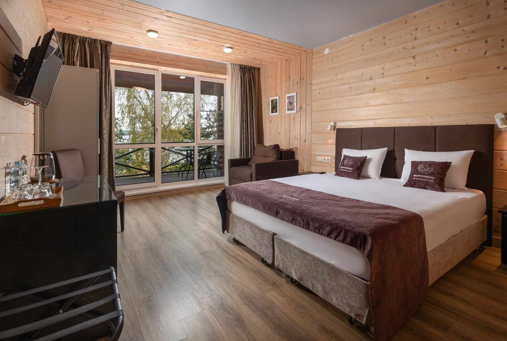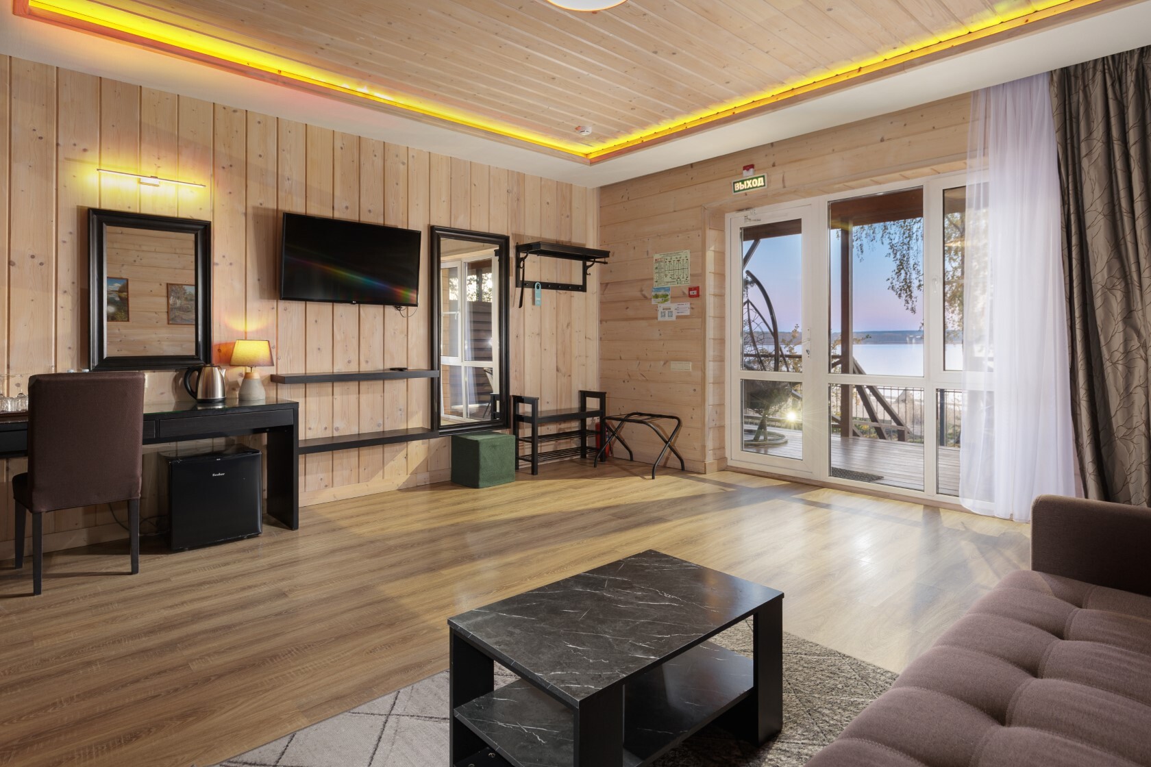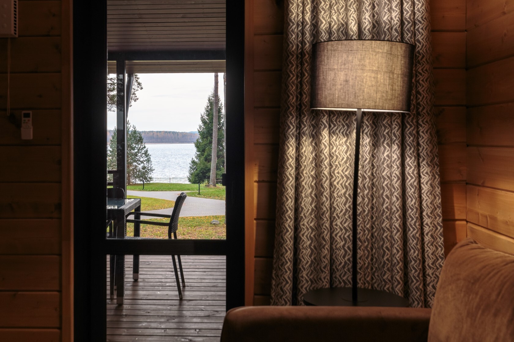 Отель стоит на берегу, и вид из окна — его ключевой актив. Но в одной категории могут быть как панорамные номера, так и варианты с видом на лес. Чтобы не раздувать бюджет и при этом не вводить гостя в заблуждение, мы применили хитрый приём: