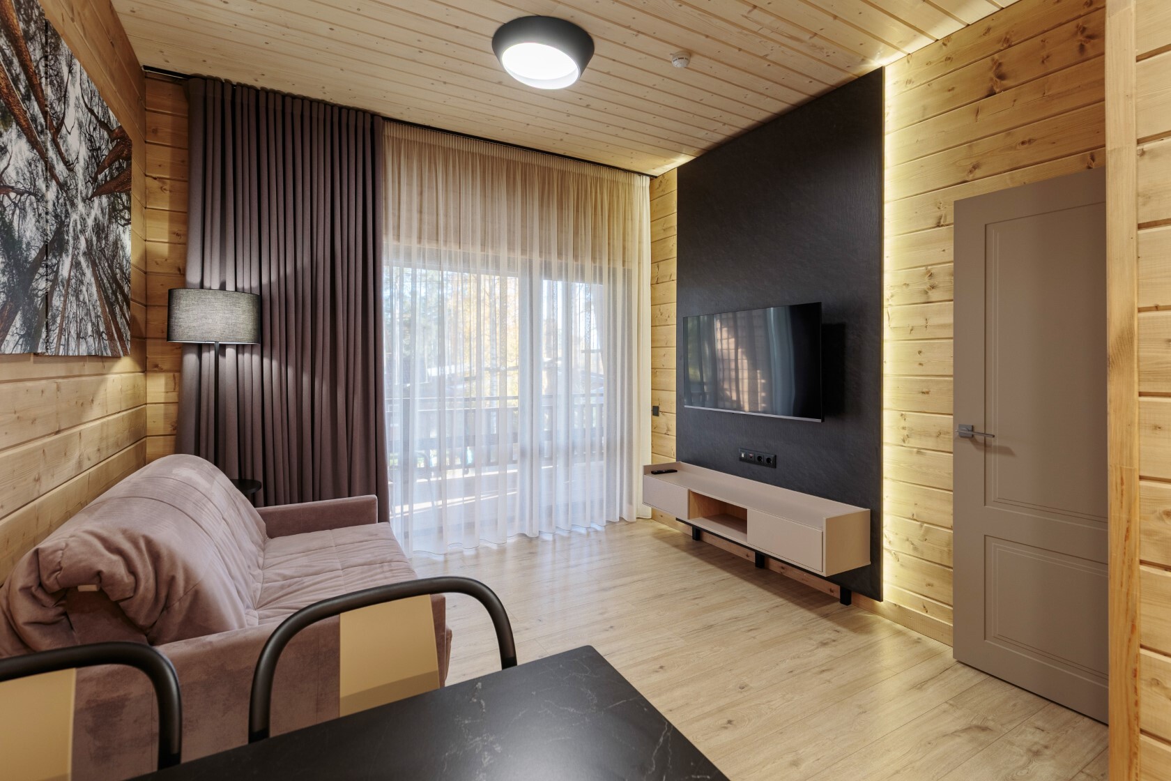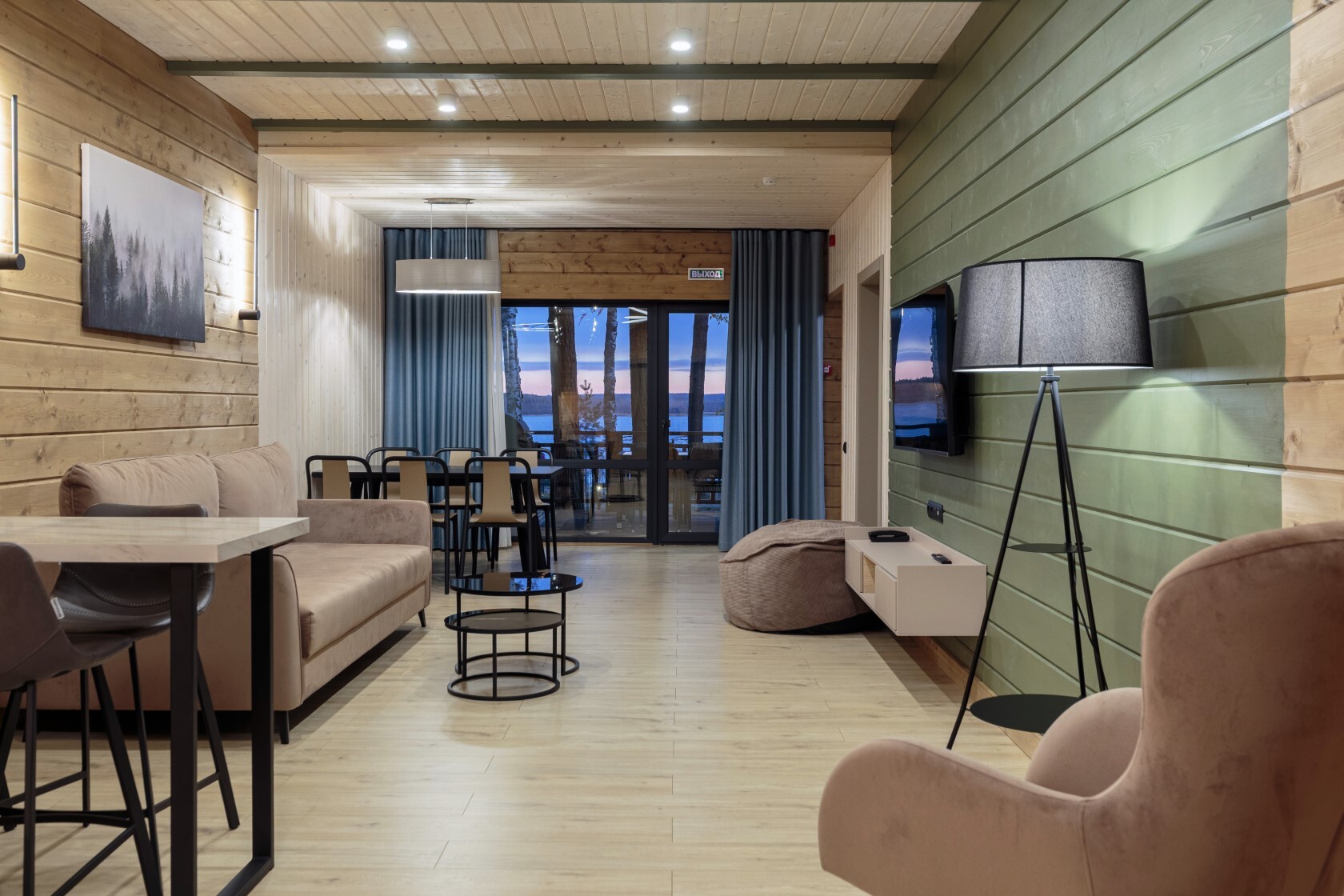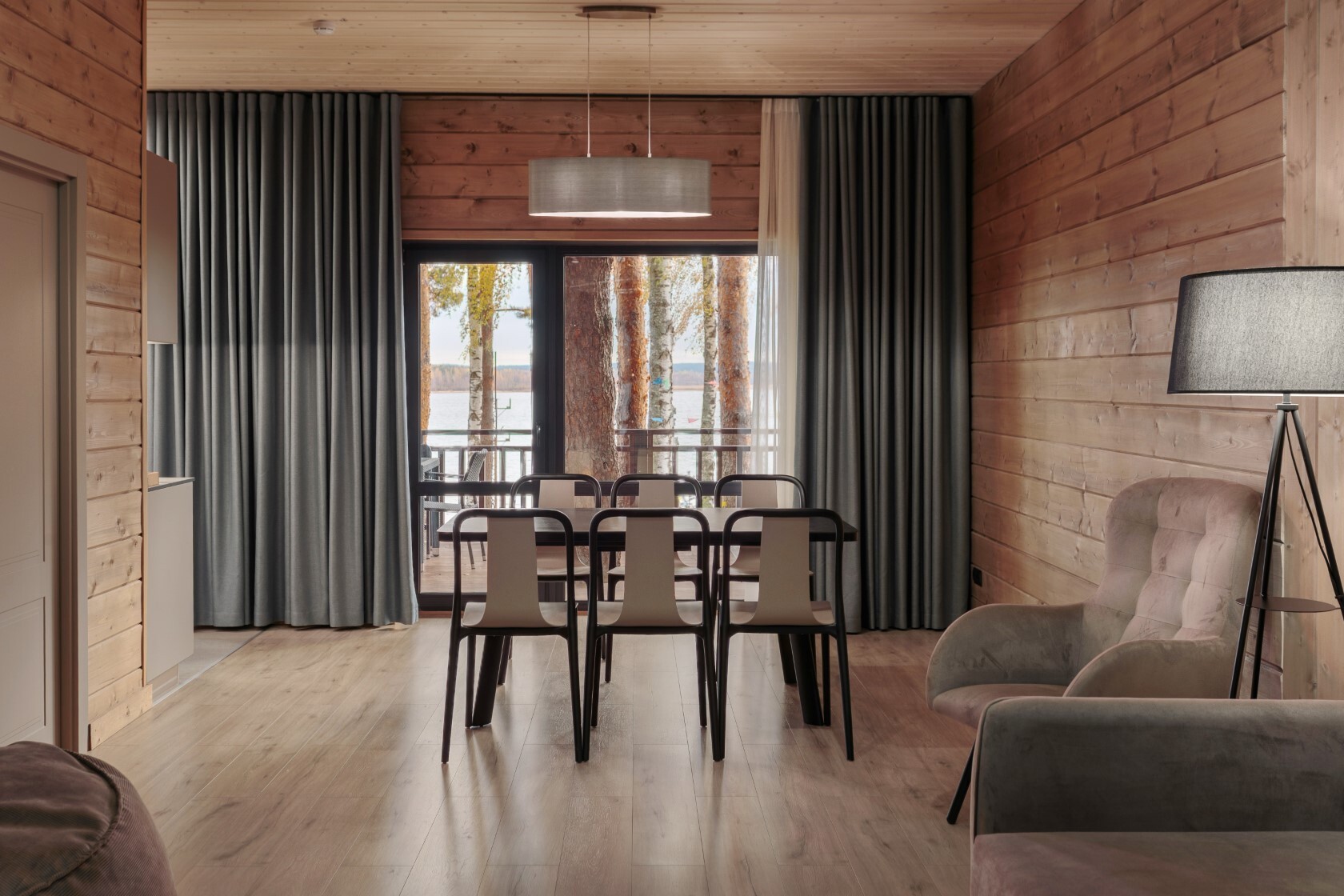 Отель стоит на берегу, и вид из окна — его ключевой актив. Но в одной категории могут быть как панорамные номера, так и варианты с видом на лес. Чтобы не раздувать бюджет и при этом не вводить гостя в заблуждение, мы применили хитрый приём: