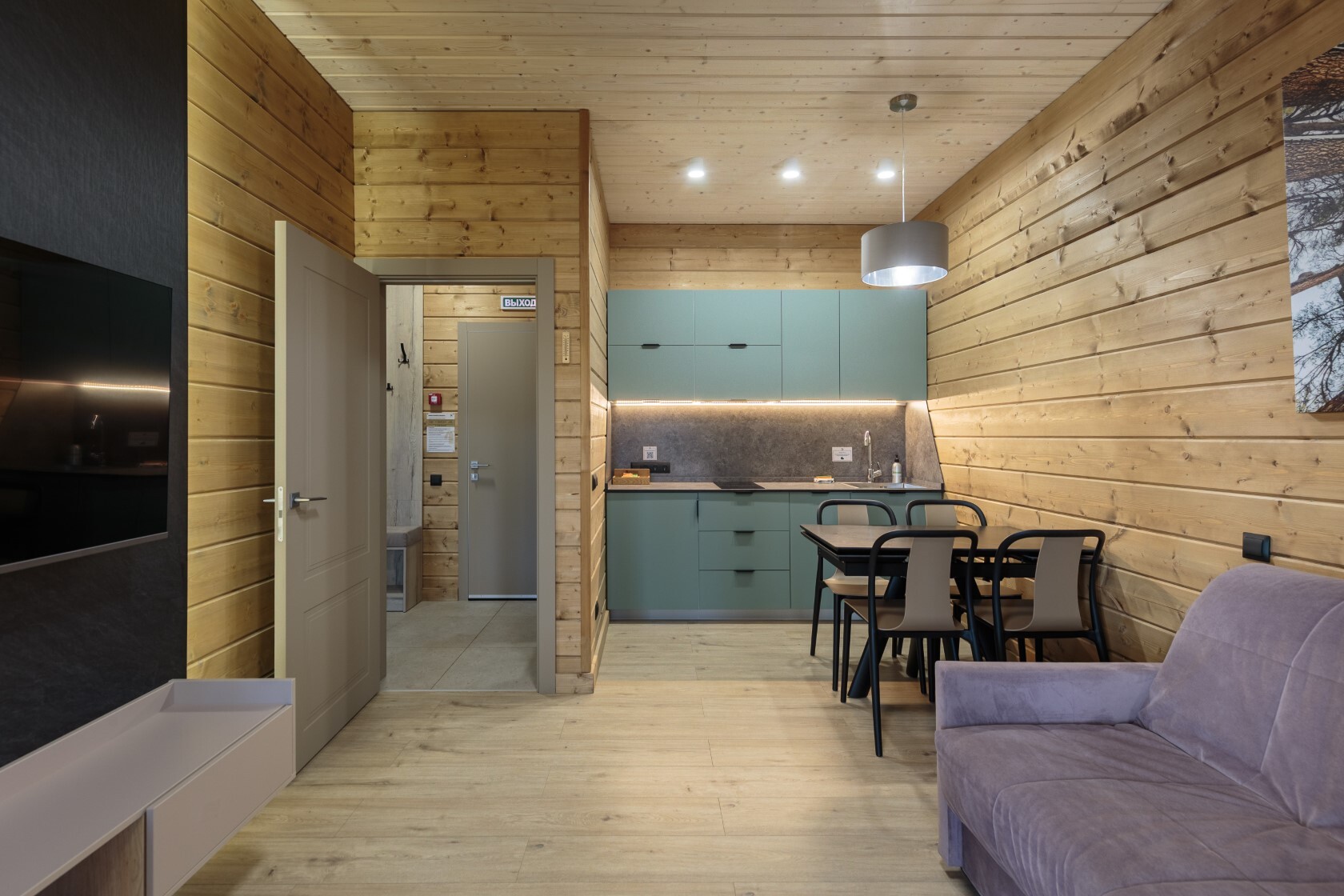 Особая сложность — дуплексы. Это длинные помещения, полностью отделанные деревом, с окном в самом конце. Дерево активно поглощает свет, а окно создаёт экстремальный контраст.